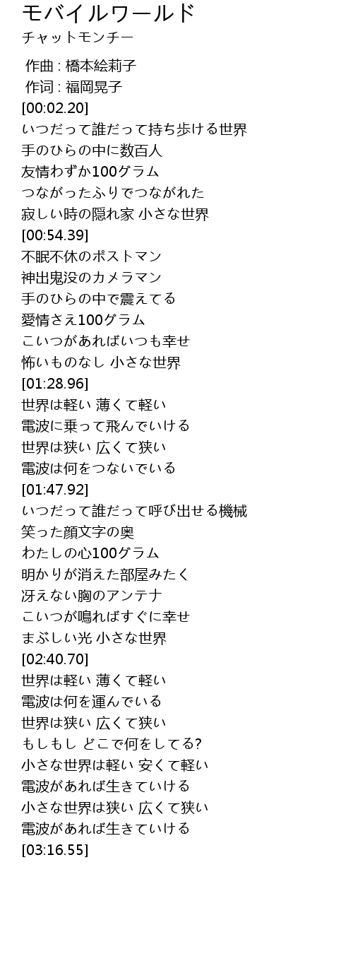 | [02:58.31] | 小さな世界は軽い 安くて軽い |