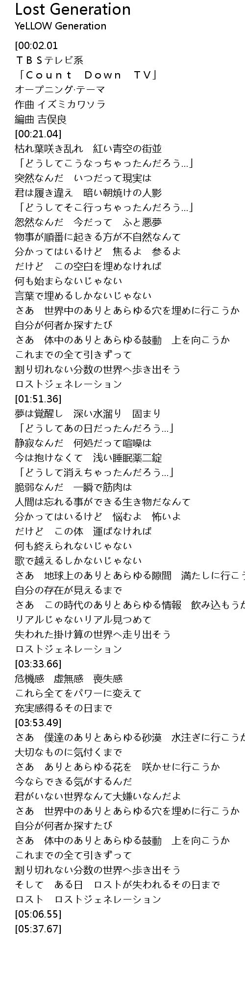 | [04:49.75] | そして ある日 ロストが失われるその日まで |