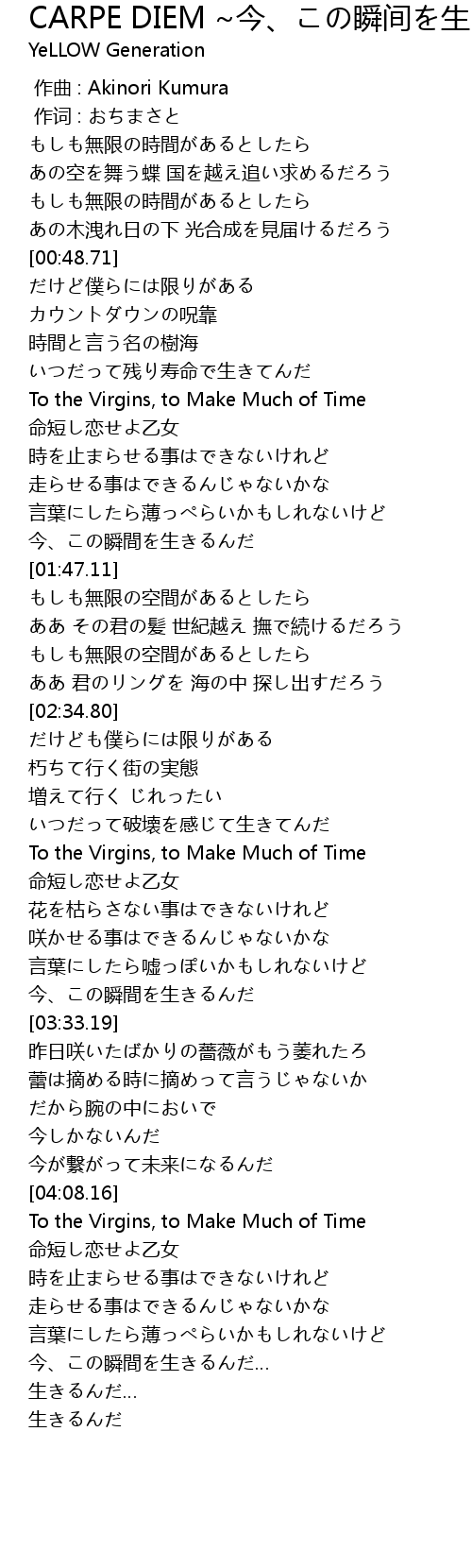 | [04:38.77] | To the Virgins, to Make Much of Time |