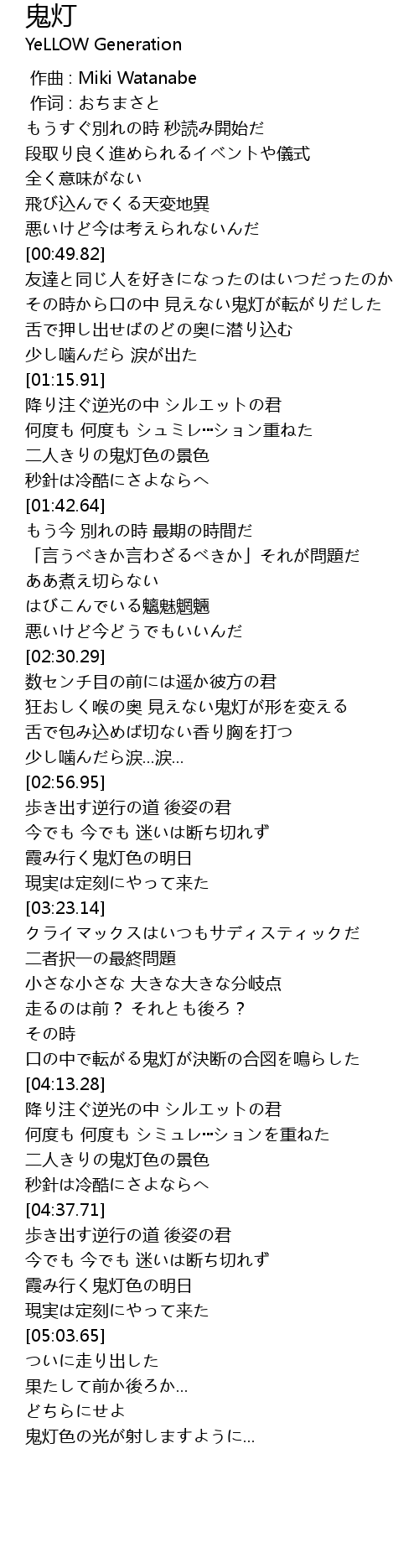 | [04:50.65] | 霞み行く鬼灯色の明日 |