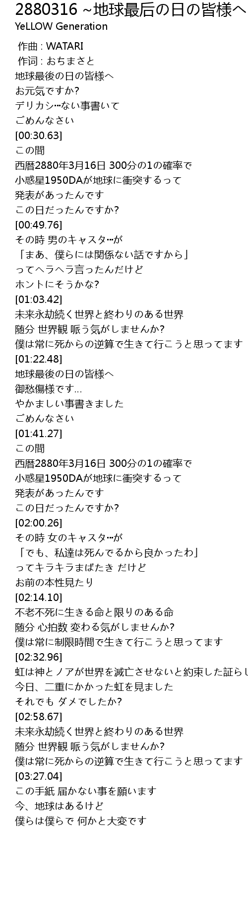 | Song | 2880316 ~地球最后の日の皆様へ~ |