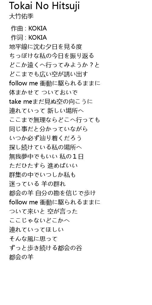 | [03:12.61] | follow me 衝動に駆られるままに |