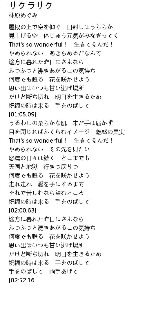 | [02:43.61] | 手をのばして 両手あげて |