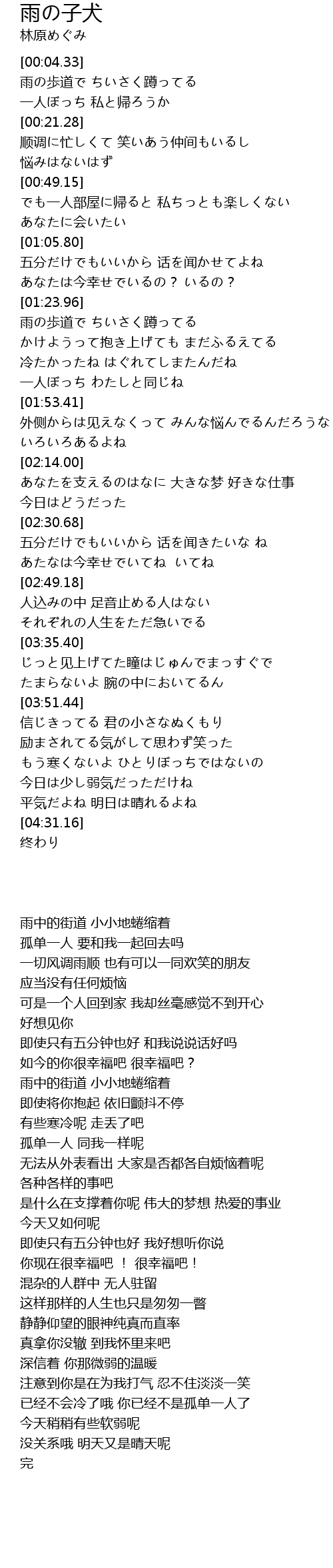 | [01:40.46] | 冷たかったね はぐれてしまたんだね |