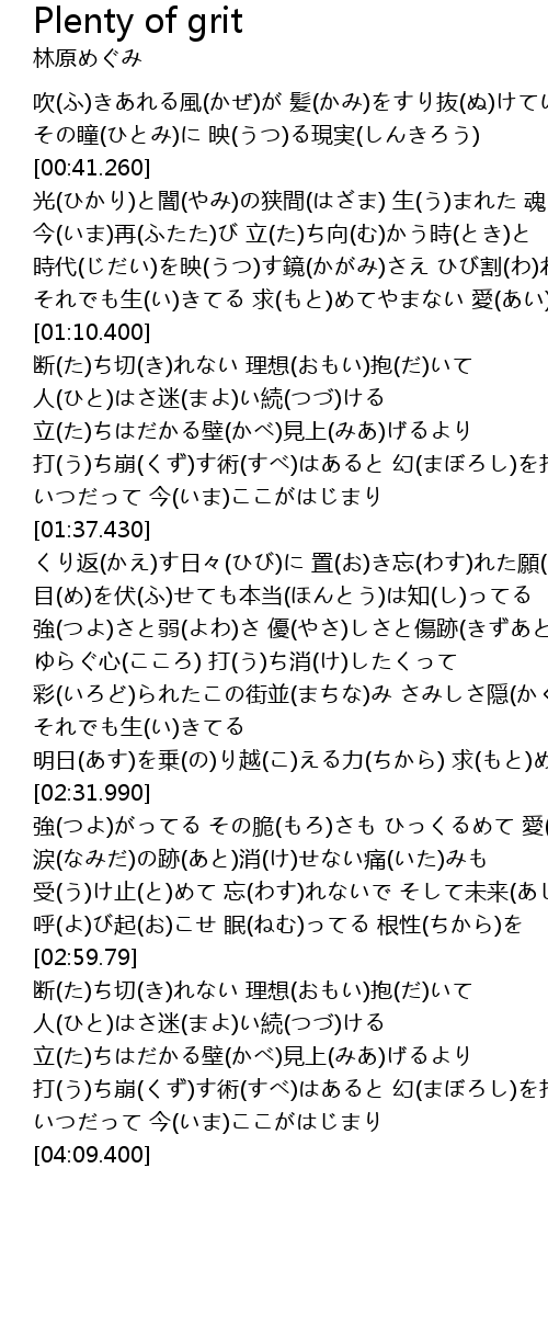 | [02:24.940] | 明日(あす)を乗(の)り越(こ)える力(ちから) 求(もと)めてる |