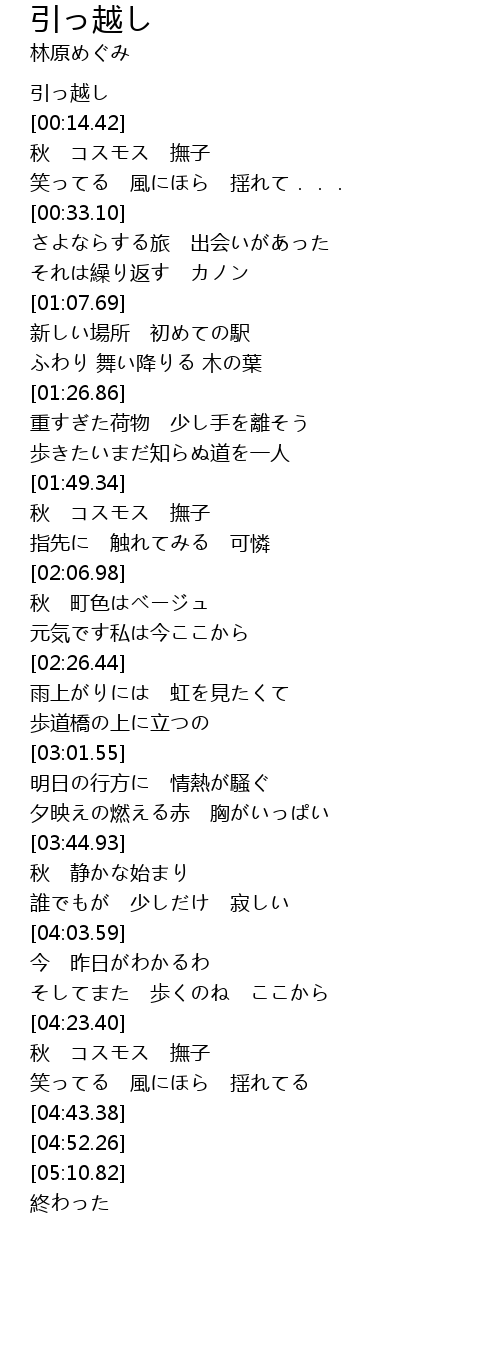 | [01:19.05] | ふわり 舞い降りる 木の葉 |