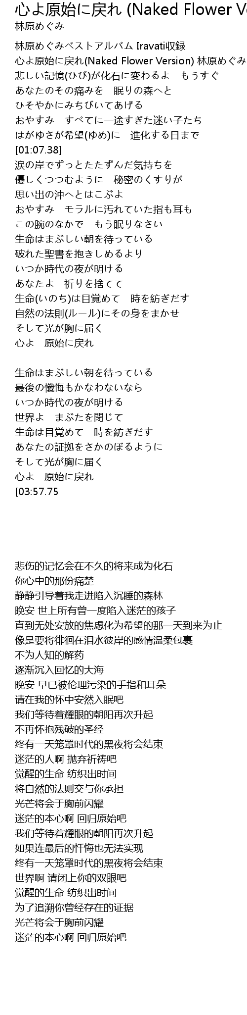| [00:00.00] | xīn yuán shǐ tì Naked Flower Version lín yuán |