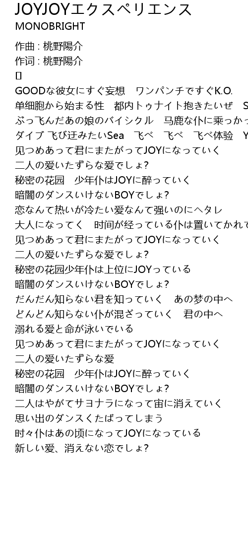 | 作词 : 桃野陽介 | |
