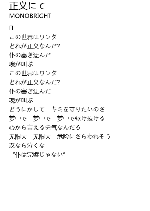 | Song | 正义にて |