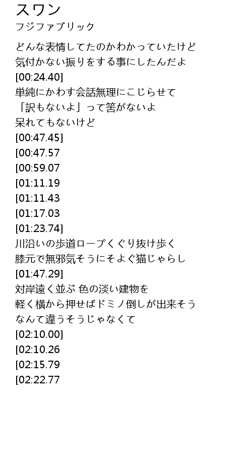 | [00:35.58] | 単純にかわす会話無理にこじらせて |