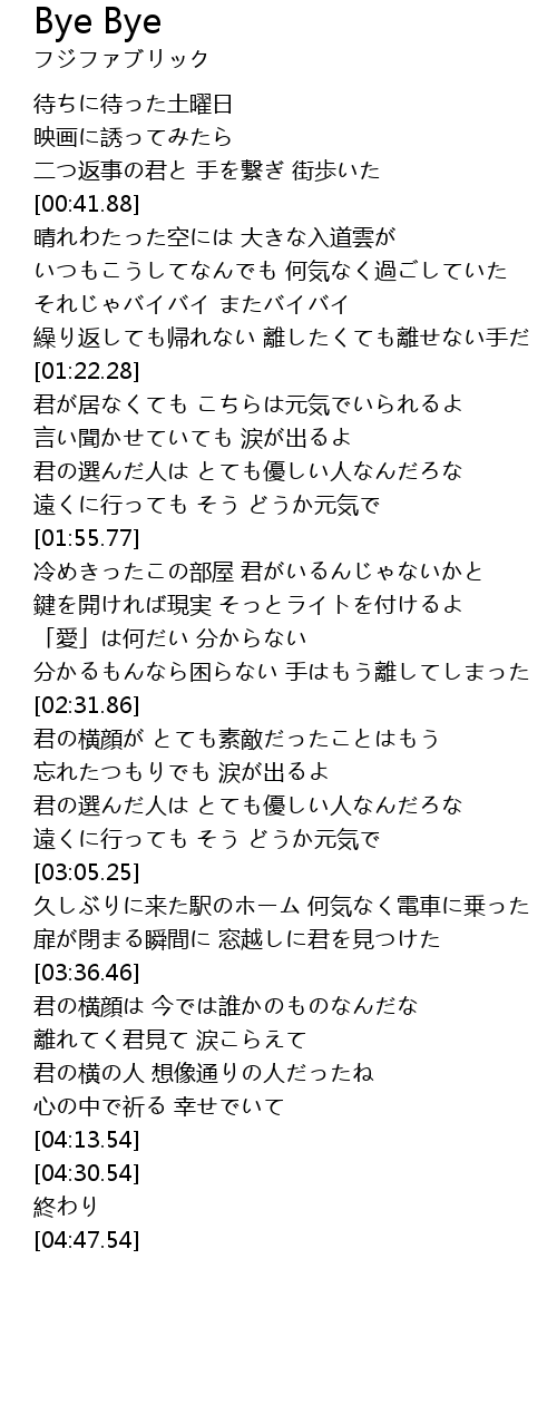 | [01:09.90] | それじゃバイバイ またバイバイ |