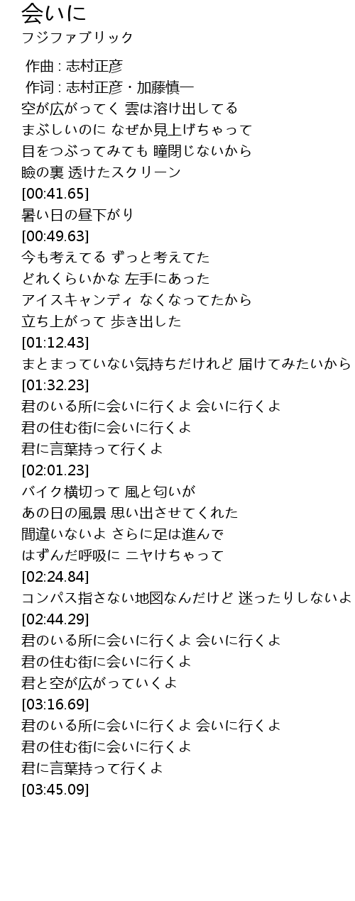 | [02:57.29] | 君の住む街に会いに行くよ |