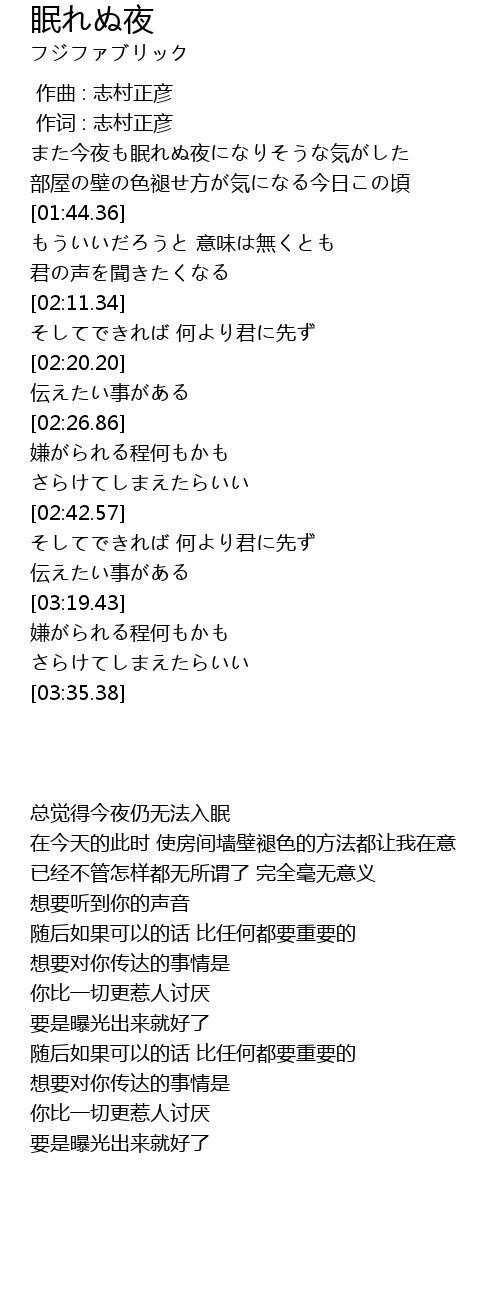 | [00:27.35] | また今夜も眠れぬ夜になりそうな気がした |