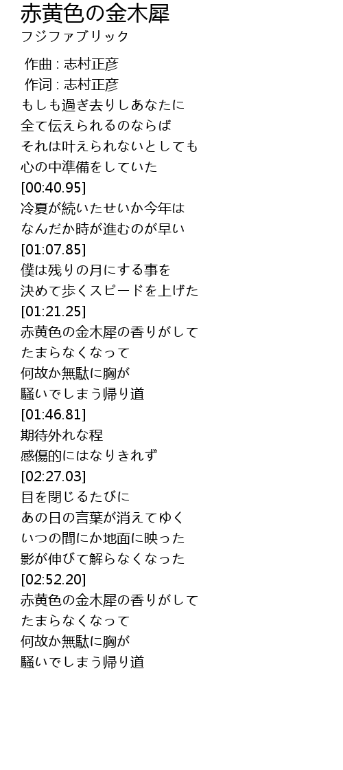 | [02:52.89] | 赤黄色の金木犀の香りがして |