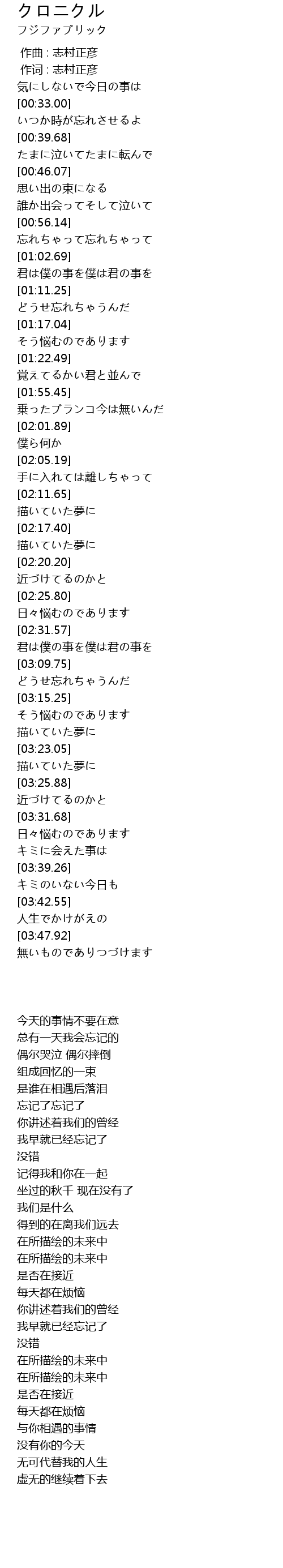 | [00:01.00] | 作词 : 志村正彦 |