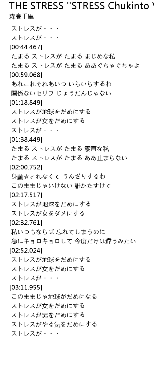| [01:45.842] | たまる ストレスが たまる 素直な私 |