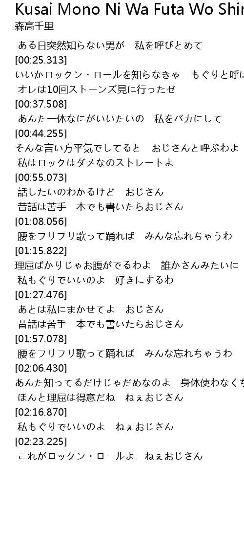 | [01:54.489] | 昔話は苦手 本でも書いたらおじさん |