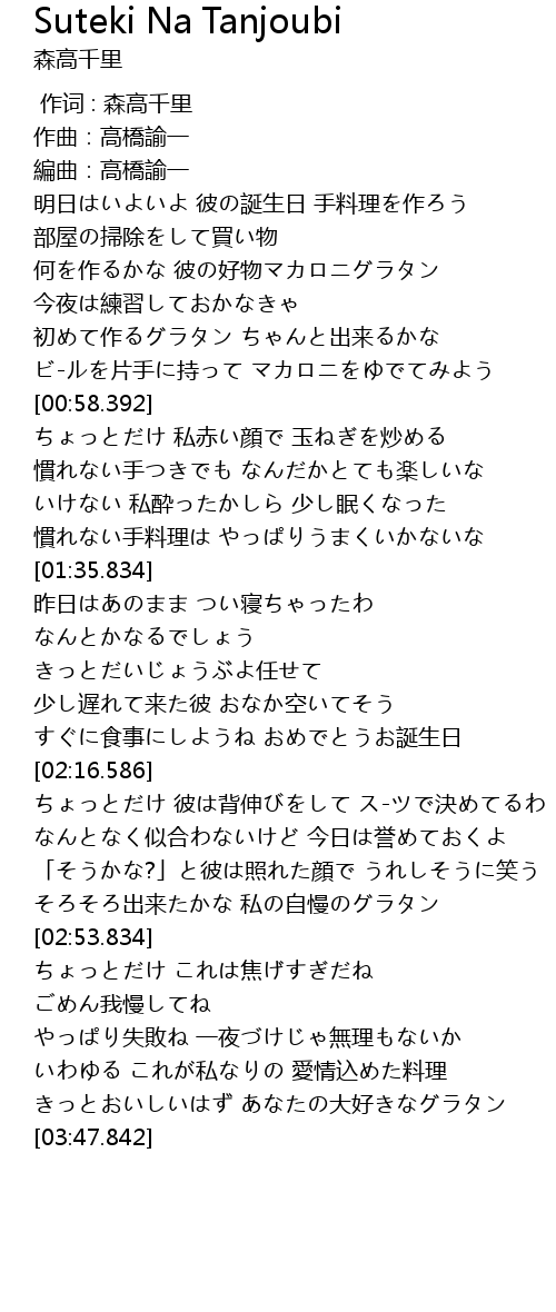 | [02:07.089] | すぐに食事にしようね おめでとうお誕生日 |