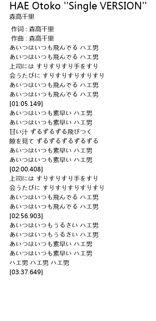 | [03:28.403] | ハエ男 ハエ男 ハエ男 |