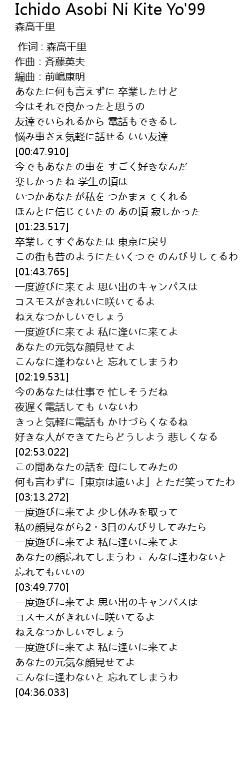 | [04:01.775] | 一度遊びに来てよ 思い出のキャンパスは |