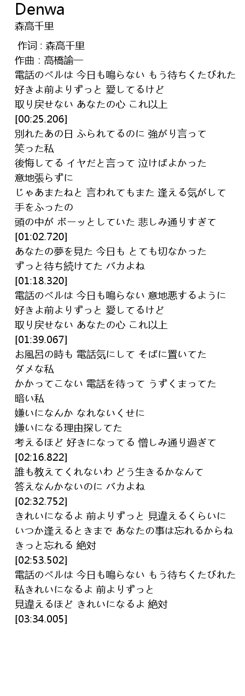 | [01:50.616] | かかってこない 電話を待って うずくまってた 暗い私 |