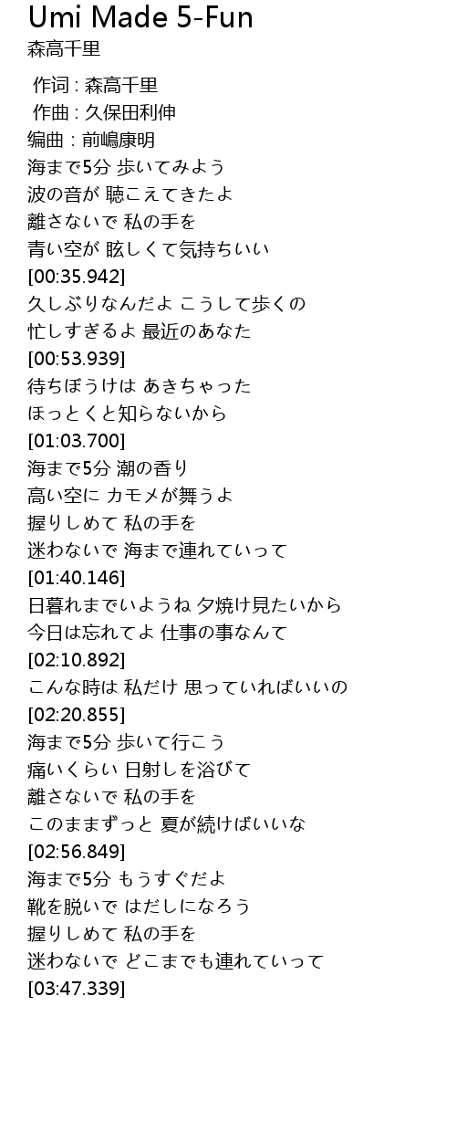 | [00:00.000] | 作词 : 森高千里 |