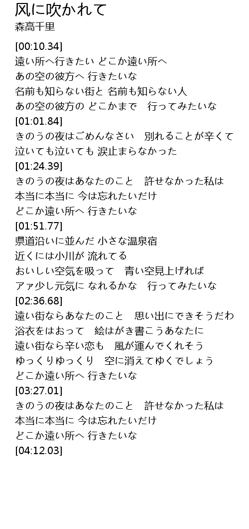 | [03:01.02] | 遠い街なら辛い恋も 風が運んでくれそう |