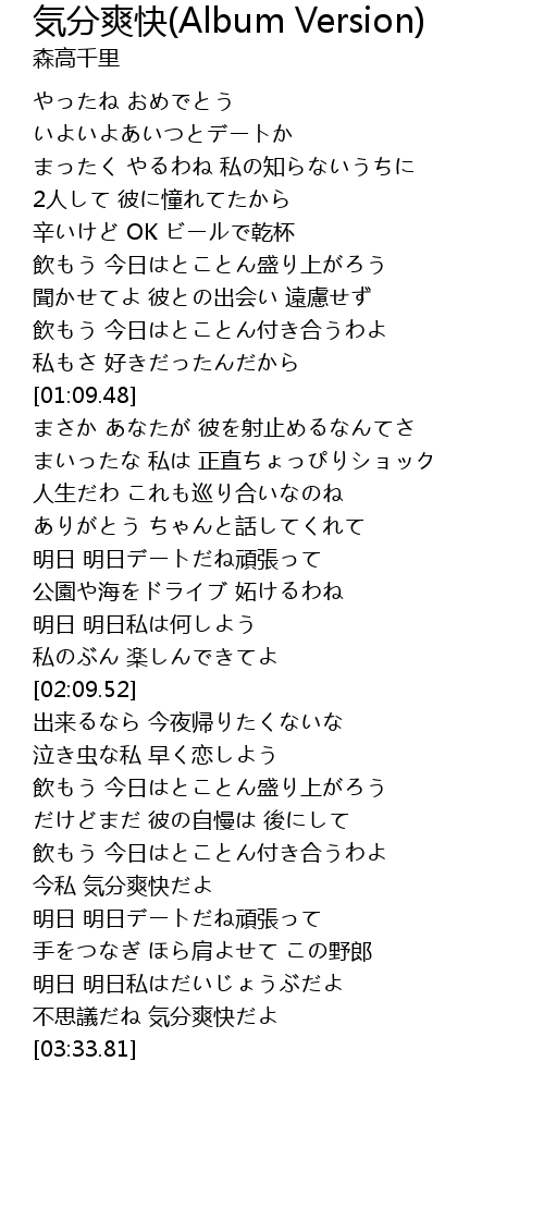 | [03:28.59] | bù sī yì qì fēn shuǎng kuài |