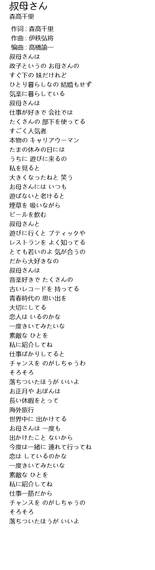 | [00:42.361] | ひとり暮らしなの 結婚もせず |