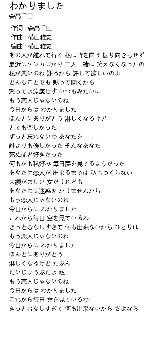 | Song | わかりました |