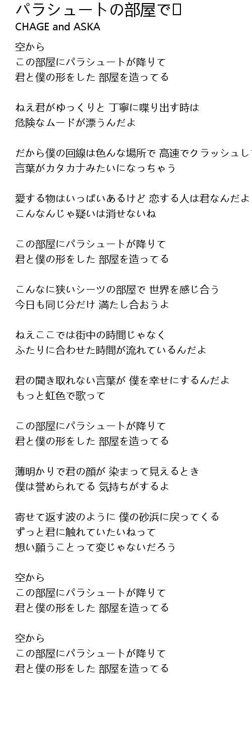 | Song | パラシュートの部屋で |