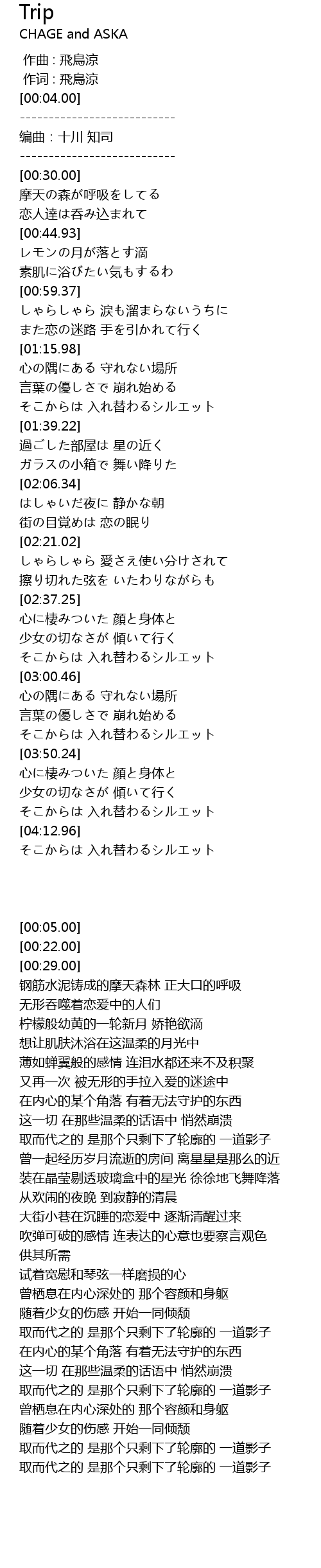 | [04:05.74] | そこからは 入れ替わるシルエット |