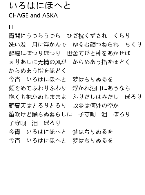 | Song | いろはにほへと |