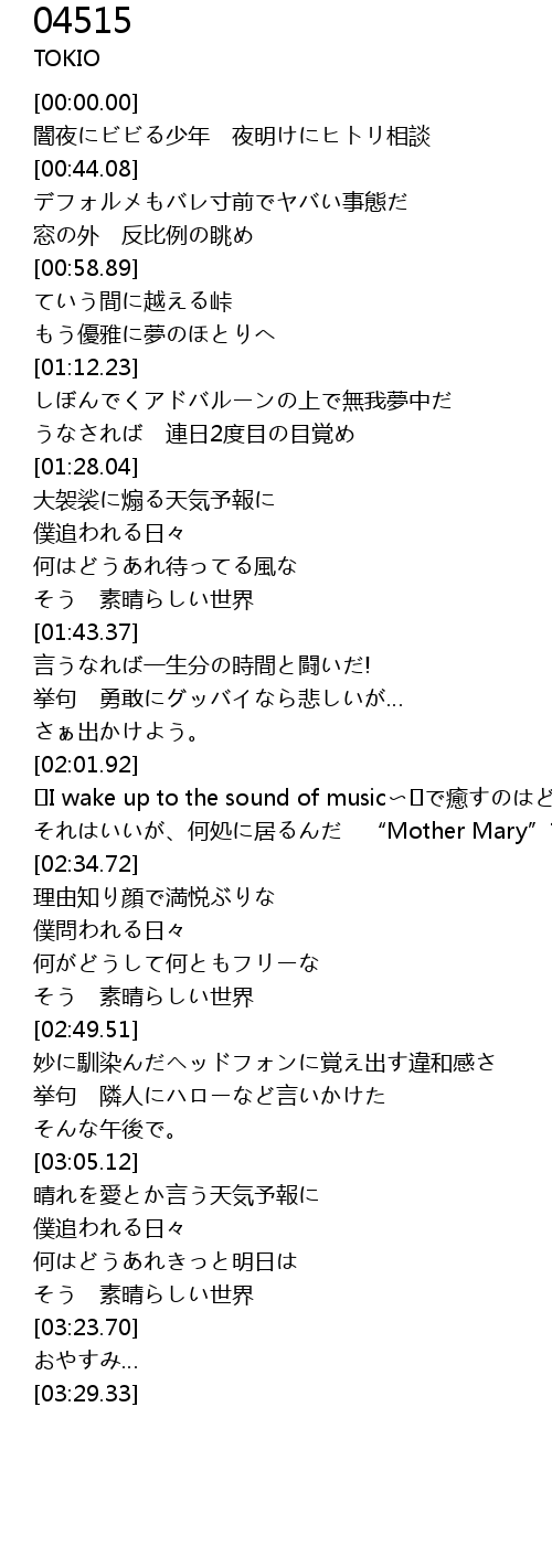 | [03:15.91] | そう 素晴らしい世界 |