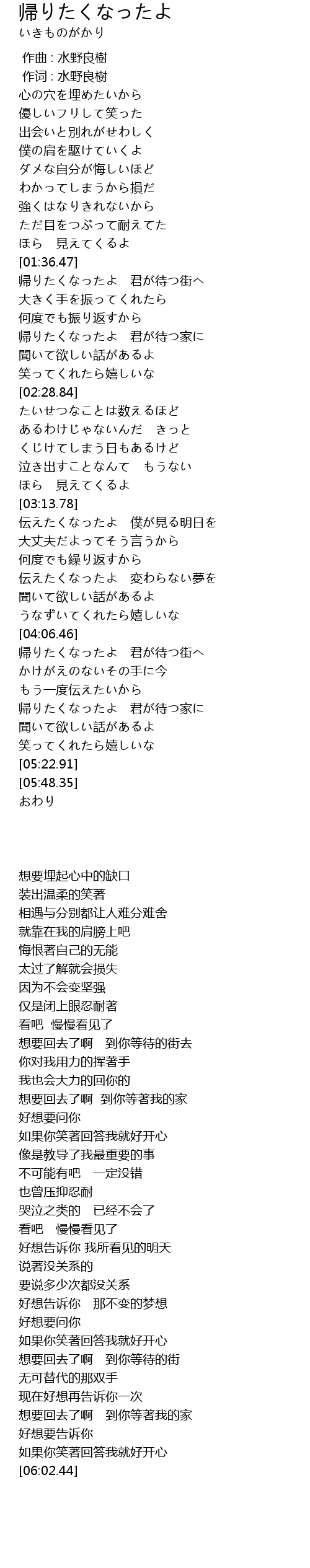 | [01:38.01] | 帰りたくなったよ 君が待つ街へ |
