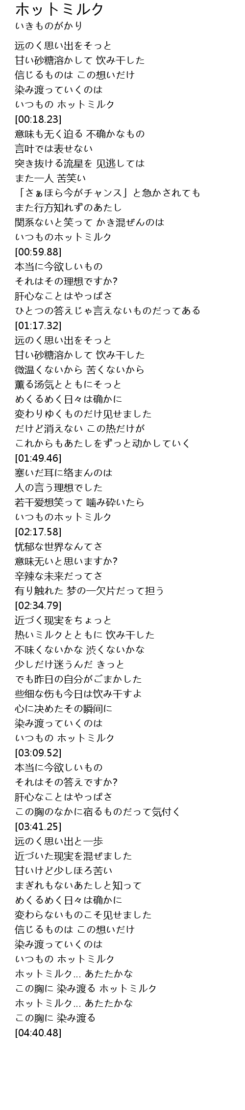 | [04:20.87] | この胸に 染み渡る ホットミルク |