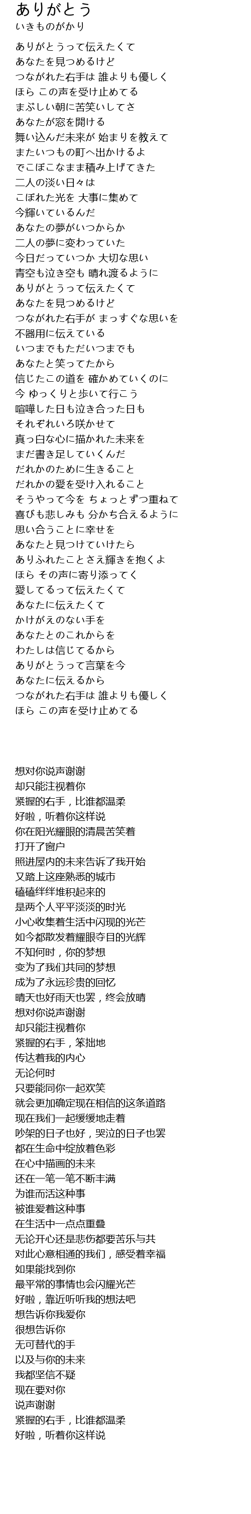 | Song | ありがとう |