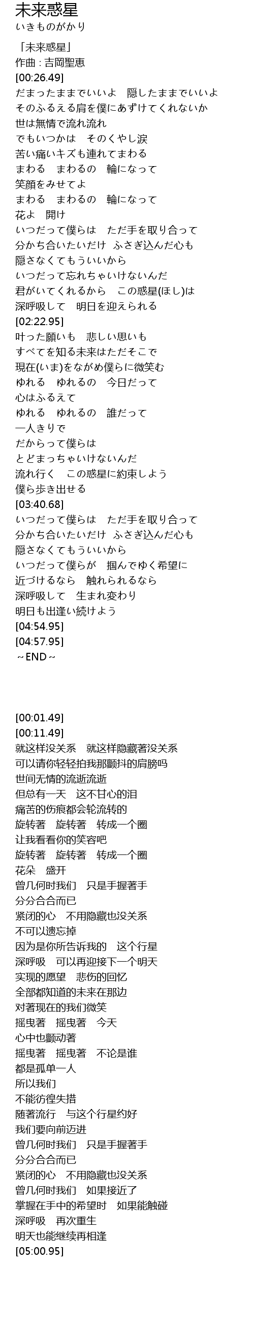 | [02:00.02] | 君がいてくれるから この惑星(ほし)は |
