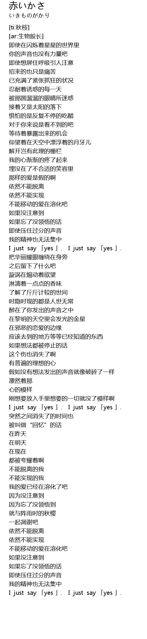 | [03:01.13] | I just say 「yes 」. I just say 「yes 」. |