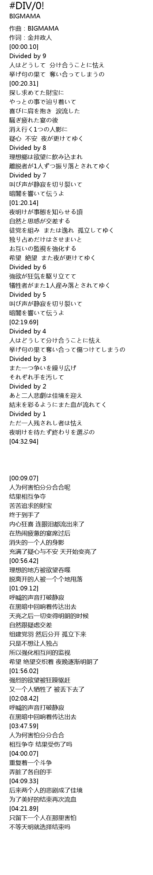 | [04:21.89] | Divided by 1 |