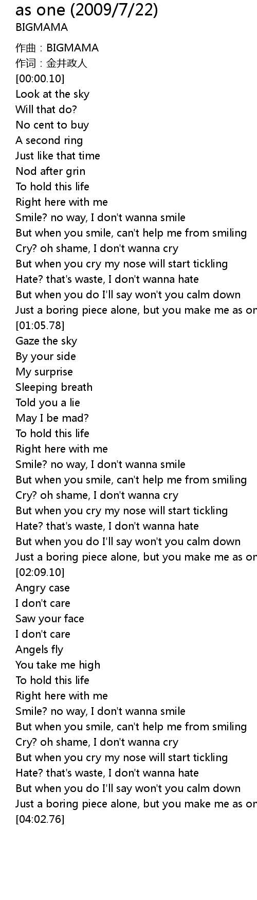 | [00:43.33] | But when you smile, can't help me from smiling |