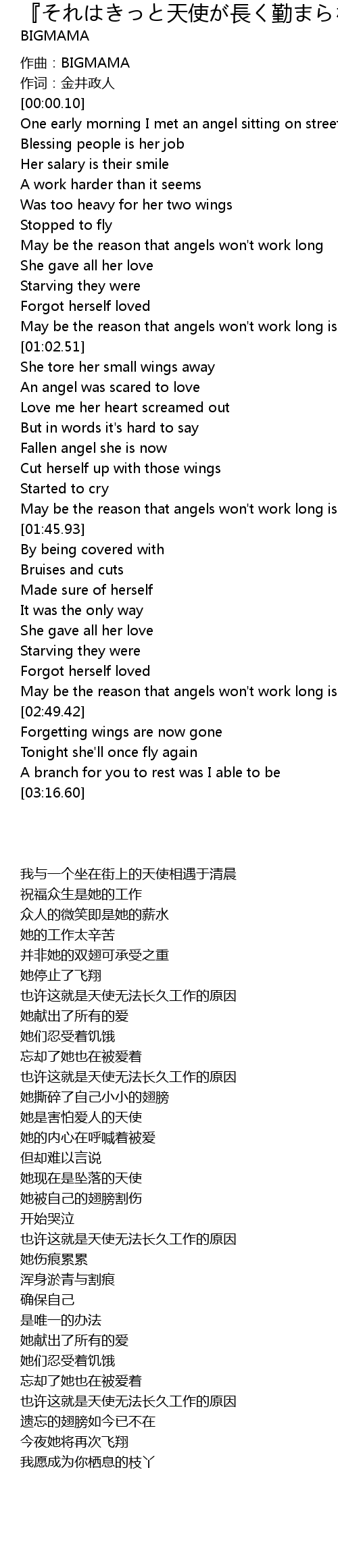 | [02:43.01] | May be the reason that angels won' t work long is this |