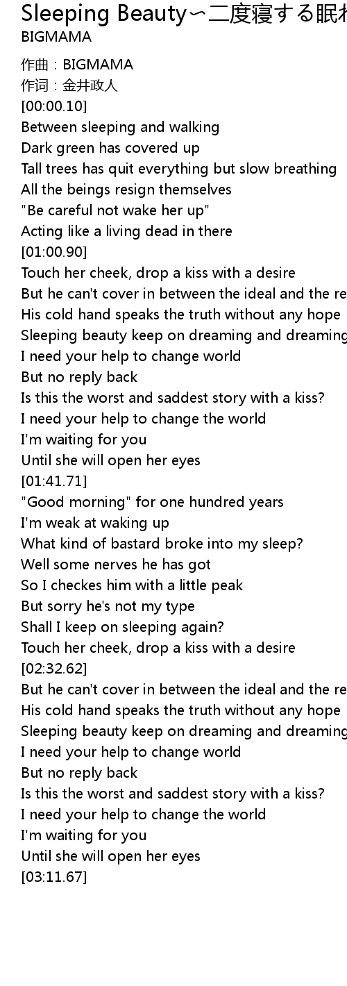 | [01:17.44] | Sleeping beauty keep on dreaming and dreaming |