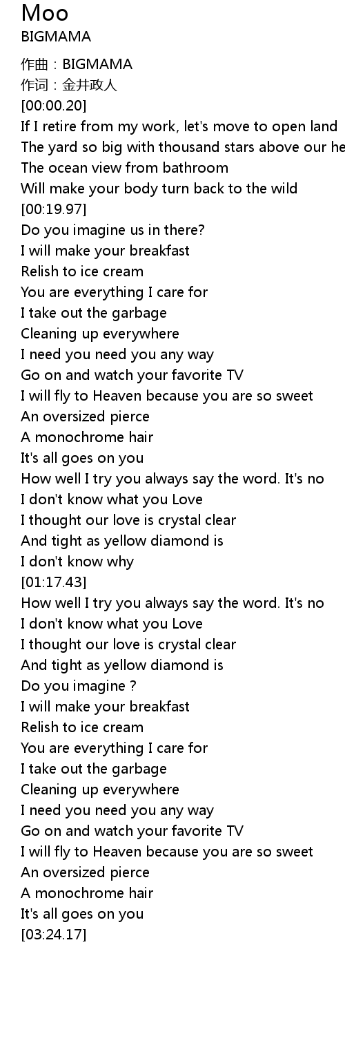 | [00:00.00] | zuò qǔ: BIGMAMA |