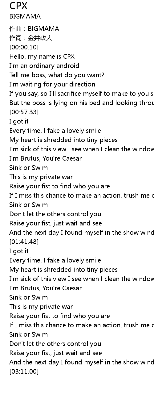 | [00:00.00] | zuò qǔ: BIGMAMA |
