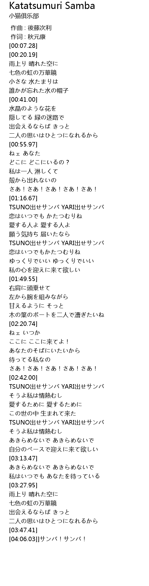 | [02:57.43] | TSUNO出せサンバ YARI出せサンバ |