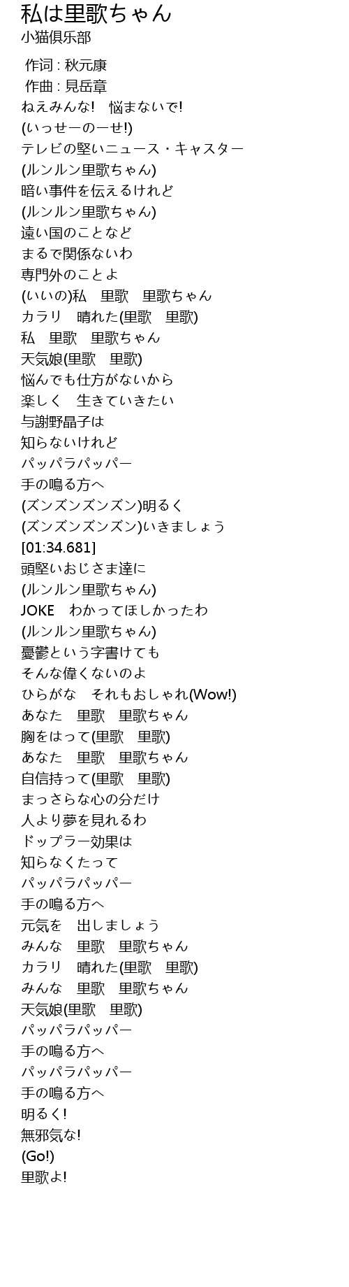 | [00:59.729] | 私 里歌 里歌ちゃん |