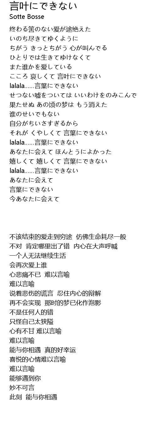 | [00:40.600] | こころ 哀しくて 言叶にできない |