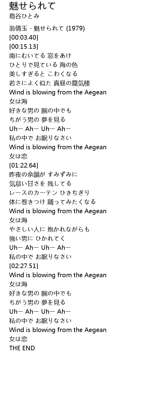 | [00:00.00] | 翁倩玉 - 魅せられて (1979) |