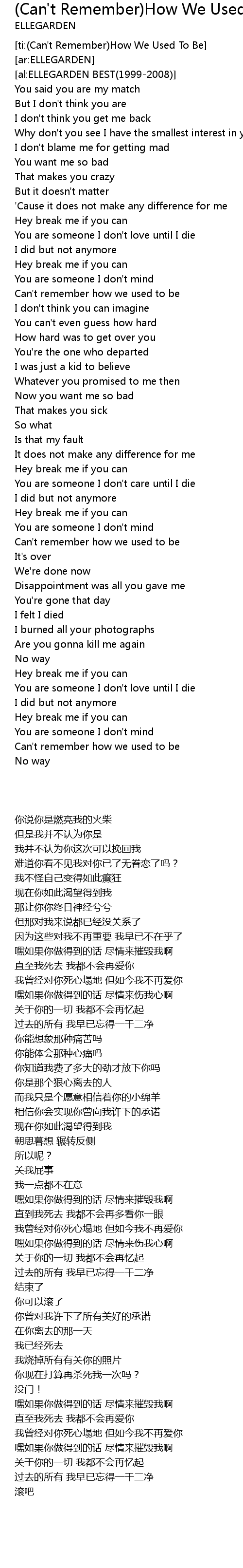[ti:(Can't Remember)How We Used To Be]